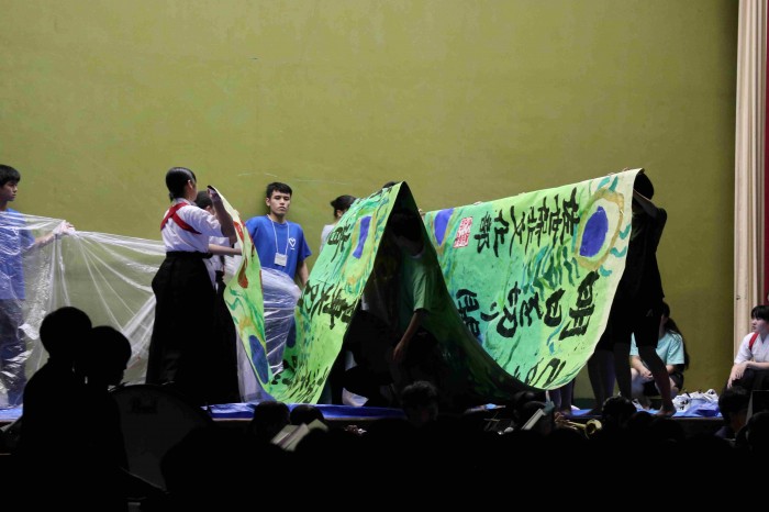 オープニングイベントでは、実行委員によるパフォーマンス、邦楽部の演奏、吹奏楽部・美術部・書道部の合同パフォーマンス等が行われました。