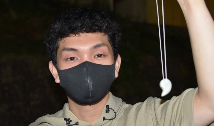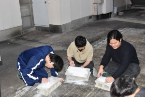 生徒たちは、滑石という石を削って、きれいな勾玉に仕上げていました。