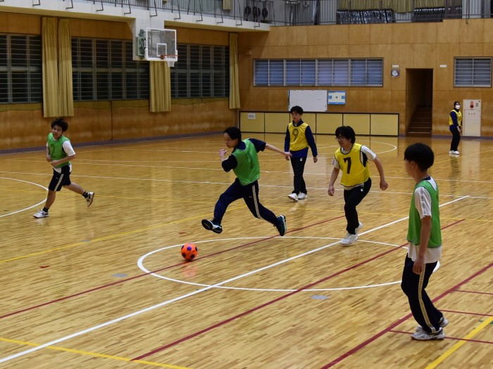 全校生徒が4チームに分かれ、フットサルをしました。