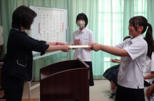 最後に、1学期に挑戦した検定の表彰を行いました。ビジネス文書検定試験では1級で1名、2級で2名、2級速度部門1名が見事合格しました。また、実用英語検定準2級で1名が合格しています。