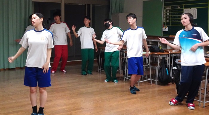 10月24日(金)に実施される体育祭に向けて、10月6日(月)から準備が始まっています。全校生徒が「赤団」と「白団」に分かれて、「応援合戦」の練習やと「団旗」の制作に励んでいます。以下、その様子です。