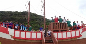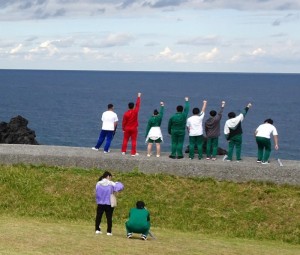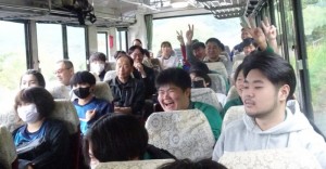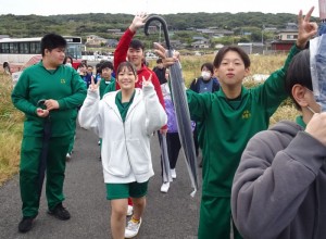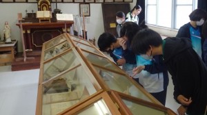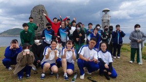 10月31日(金)に総合的な探究の時間(まんてんタイム)の一環として、三井楽地区を体感するバスツアーを行いました。「カトリック三井楽教会(資料館含む)」⇒「空海記念碑(辞本涯)」⇒「白良ヶ浜万葉公園(写真のみ)」⇒「遣唐使ふるさと館(着付け体験等)」というルートのもと、三井楽の歴史や文化に触れ、思いっきりこの時間を満喫しました。バス移動中やふるさと館のホールで行われた、生徒会企画のイベント(三井楽クイズ・じゃんけん列車)も好評でした。