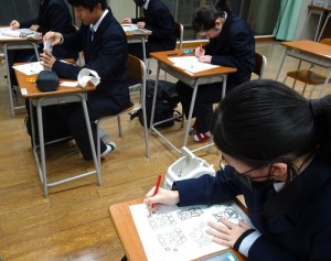 12月5日と10日のLHRの時間を使って、2026年度版のカレンダーを作成しました。着色や切り取り、レイアウトの決定など、グループごとに特色がよく出ている世界に一つだけのカレンダーが完成しました。カレンダーは、後日、地元の2つの介護施設に届けることにしています。
