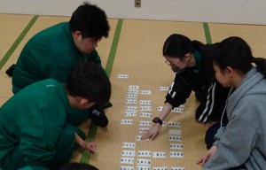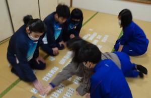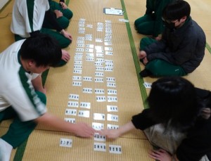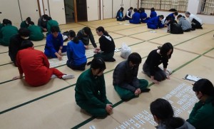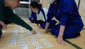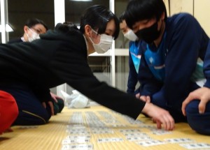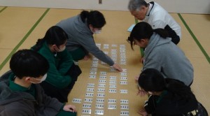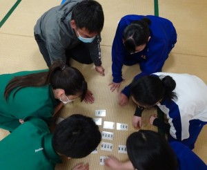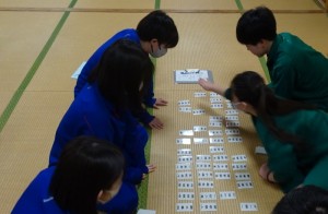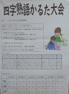 1月15日(木)に、新年の恒例行事となりつつある四字熟語かるた大会を行いました。3人1チーム編成で、各3試合を行い獲得した札数の合計を競います。本場の競技かるたさながらの白熱した対戦ばかりで、一喜一憂しながら大会を楽しんでいました。結果は「4年生Aチーム」が圧倒的な強さで優勝しました。以下、その様子です。