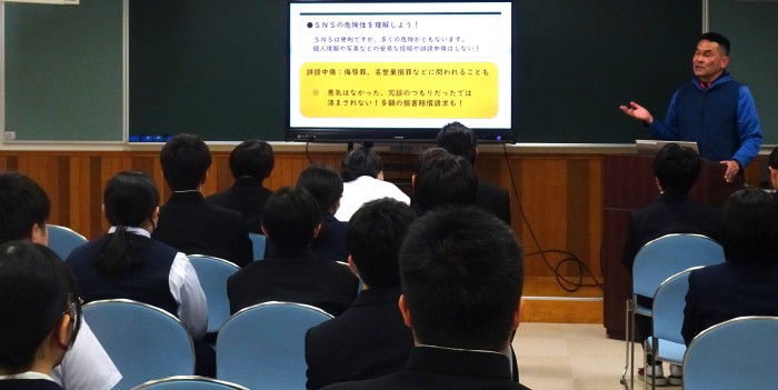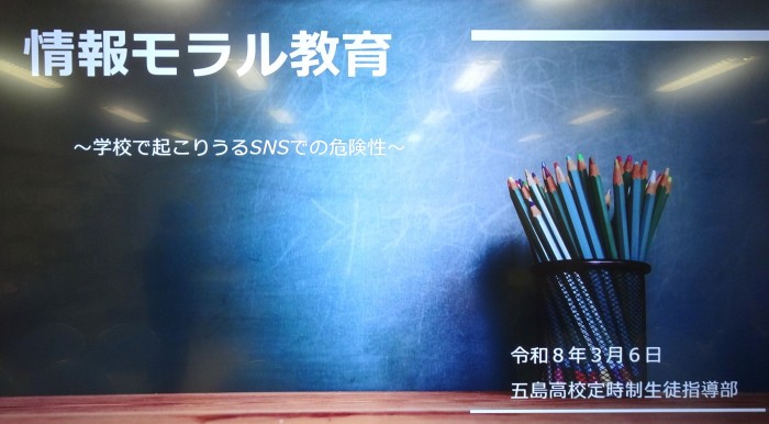 3月6日(金)に2回目の情報モラル教育を実施しました。例年は5月に1回の実施ですが、今回、SNS 上における暴力行為等の動画の投稿・拡散等の対応を目的に、改めて実施しました。ニュース等で報道された栃木県の公立高校の事例をもとに、被害者及び加害者の双方の視点・立場を、その後の影響等も含めて生徒と一緒に考える時間を取りながら、いじめ行為が許されないことはもちろん、SNSへの安易な動画の投稿や拡散の危険性などを全校生徒で共有しました。