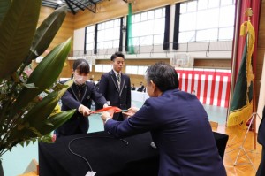 PTA記念品贈呈式 生徒代表:横岩 優月さん(3-2)