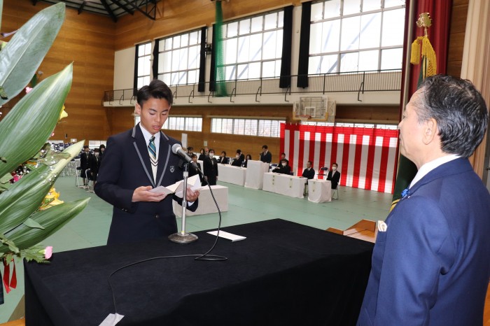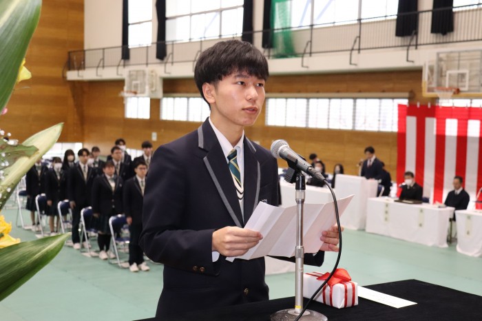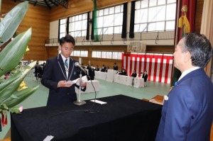 同窓会入会式 生徒代表:土本 舞さん(3-2) 山本 兼大さん(3-2)