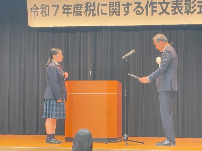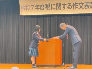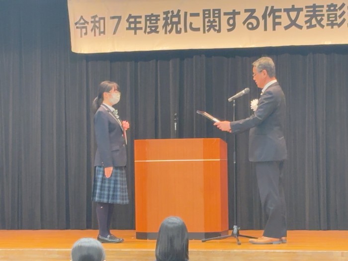 令和7年11月18日(火)。松浦市生涯学習センター(きらきら21)で、令和7年度「税に関する作文」表彰式が行われました。