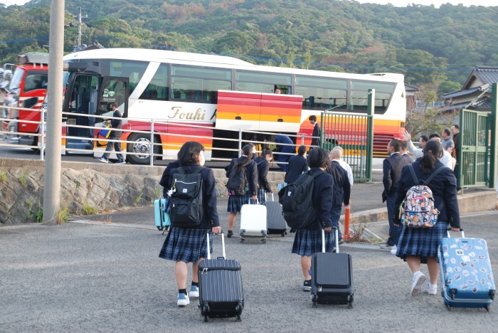 本日、第2学年36名が3泊4日の行程で修学旅行に出発しました。天候に恵まれ、体調不良者もなく無事東京に移動し、午後から「東京スカイツリー」「浅草寺散策」を楽しみました。<出発の様子>