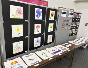 作品の内容は、1年生の「水彩による花のスケッチ」「板チョコパッケージデザイン」2年生の「ステンシルによる和をイメージしたトートバッグデザイン」です。