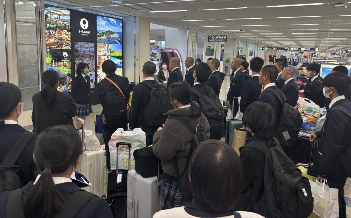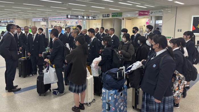 一行は20分遅れで長崎空港に無時到着し、解団式を行ないました。