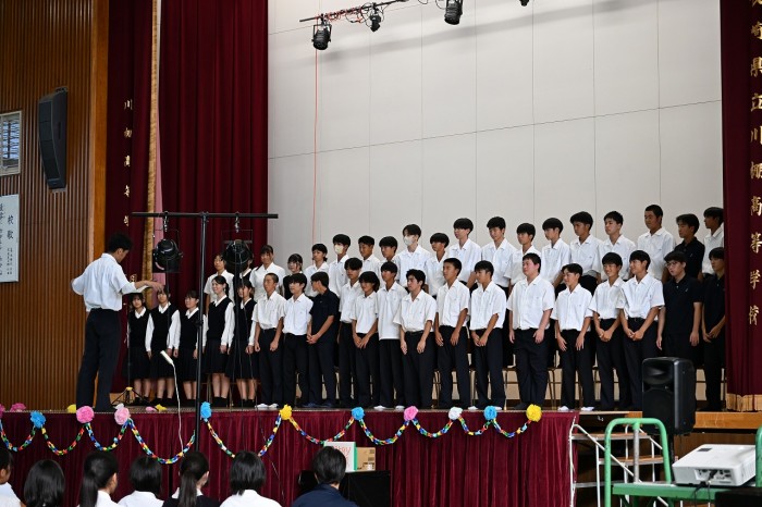 音楽科の生徒による合唱と楽器演奏、コーラス部の美しいハーモニーが体育館に響き渡りました。