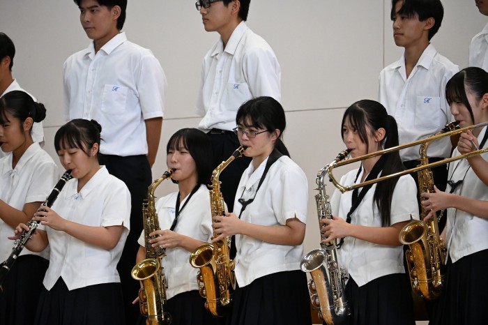 吹奏楽部と先生方によるセッション演奏は、迫力あるステージで会場を一体にしました。
