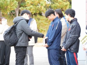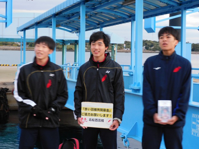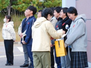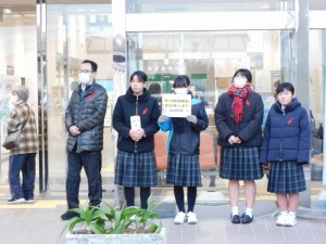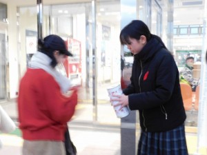 校内では、各クラスや職員室に置かれた募金箱で募金し、12月6日(土)は小値賀港ターミナルにおいて街頭募金活動を生徒会、有志生徒で行いました。