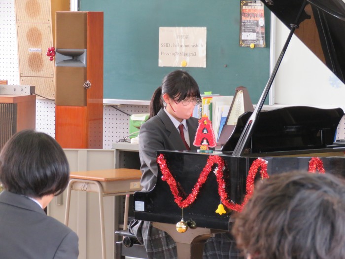 合唱やピアノソロ、創作曲の演奏などを披露しました。