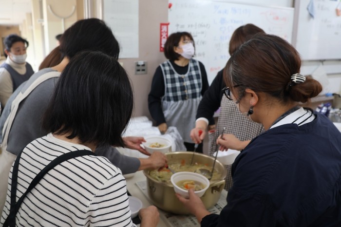 ゴールの後は、保護者の方、ホストファミリーの方が作ってくださった温かい豚汁を食べ、疲れを癒すことができました。