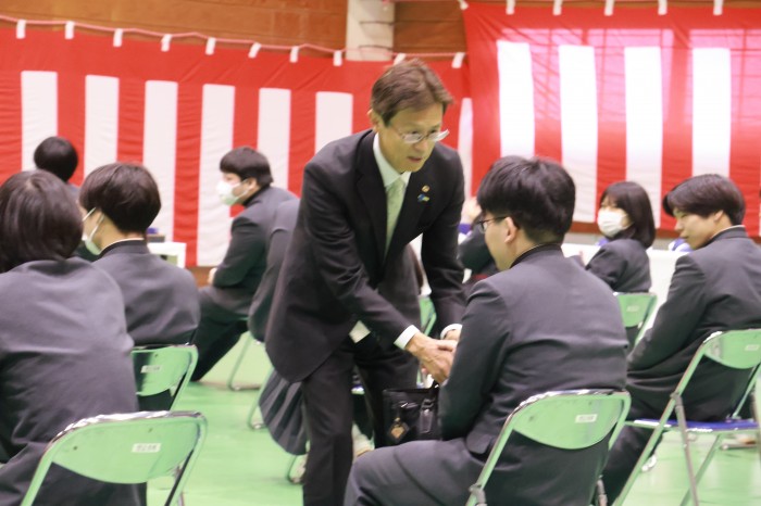 祝辞のあと、卒業生一人ひとりと握手をかわし温かい励ましの言葉をかけてくださいました。
