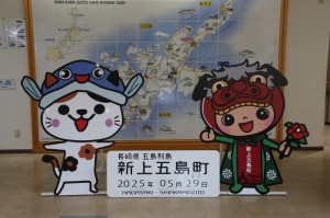 新上五島町のキャラクター「あミ~ご」と「みことちゃん」もかけつけました。
