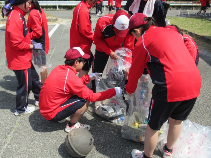 お昼ごはんと自由時間の後、周辺の地域清掃活動を行い、最後は蛤浜での記念撮影でした。