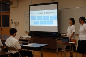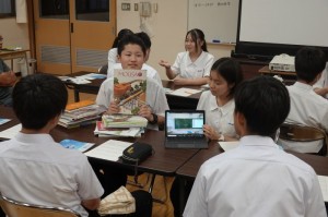 座談会では高校生が実際の高校生活で使っている教科書やプリントを使いながら学校生活について説明をし、和気あいあいとした雰囲気となりました。