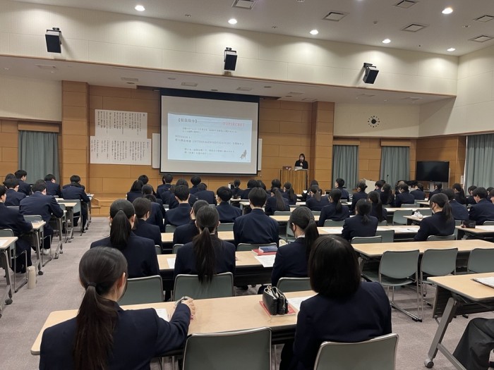 令和8年3月5日(木)に2学年を対象キャリアDAYを実施しました。総合的な探究の時間の活動を通して、「自分と社会(地域)」を軸にテーマを設定し探究的に学んできました。今回は、その学びの中に具体的な「仕事」という視点を位置付けることで、生徒が自身のキャリアについてより現実的かつ主体的に考えるきっかけづくりとして実施しました。