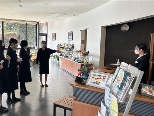 ▲企業(ビューホテル)で説明を受ける生徒 ▲事後指導で発表するようす