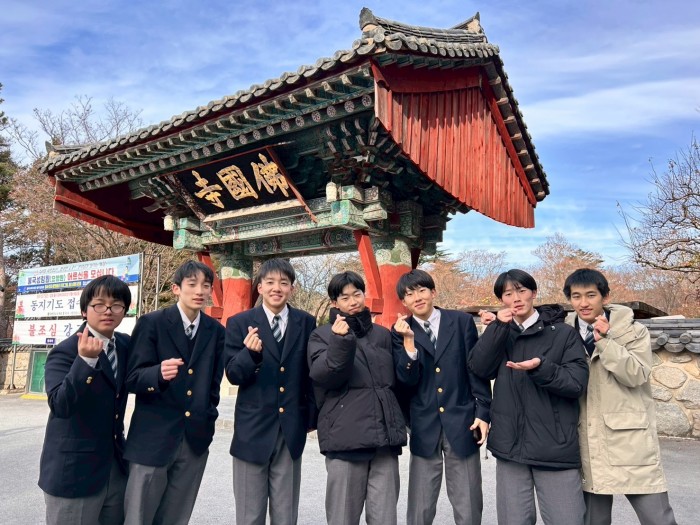 修学旅行2日目は、仏国寺(世界遺産)・天馬塚を見学した後、釜山に戻り、現地の高校との交流会に参加しました。