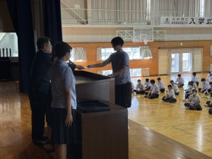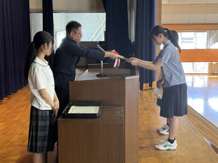 9月1日(月)に、2学期の始業式、学級役員任命式、表彰伝達式が行われました。