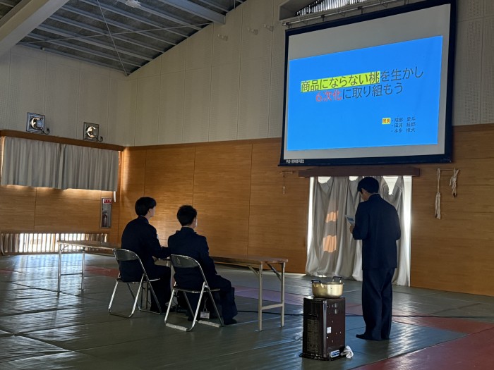 農業ビジネス科の全学年が参加し、3年生がこれまでの研究成果を発表しました。