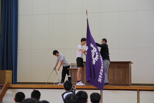 団旗授与は、教頭先生よりバレーボール部主将が受け取り、選手宣誓は、バドミントン部主将が素晴らしい宣誓をしてくれました。また、野球部による選手激励の応援で会場は盛り上がり高総体に向けた気持ちが更に高揚し士気が高まったように感じられました。みなさん選手たちの活躍に期待しましょう!