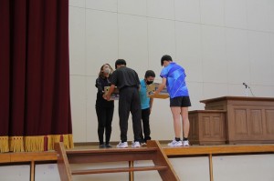 激励品として、PTAと山口組様からアクエリアスペットボトルを頂きました。全生徒に配らせていただきます。この1本が勝利のための活力になると思います。ありがとうございました。