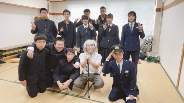 特殊詐欺防止に関する寸劇に劇団『鹿道』として生徒会執行部12名の生徒が参加しました。