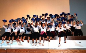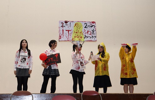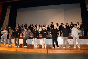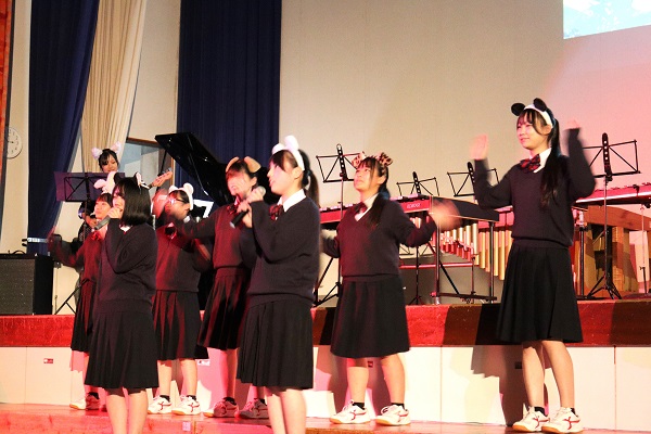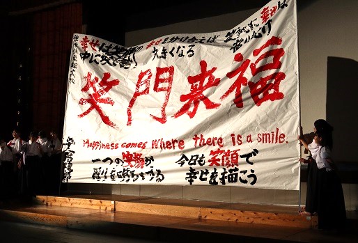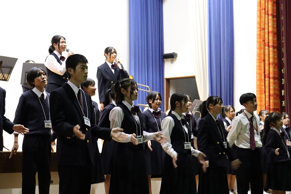二日目午後のステージでは、有志の生徒が演奏や歌やダンスで盛り上げたり、全校生徒でAIさんの「Happiness」を歌ったりしました。