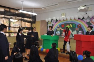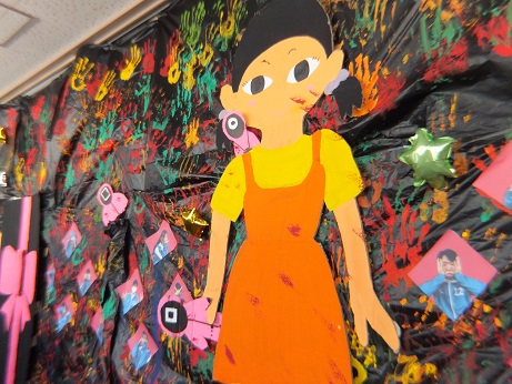 2学年は、本年度から展示部門での参加となり、小説や番組、ゲームを題材としたお化け屋敷や型抜きゲーム、ピン倒しゲームなど、参加者が楽しめる企画を実施しました。