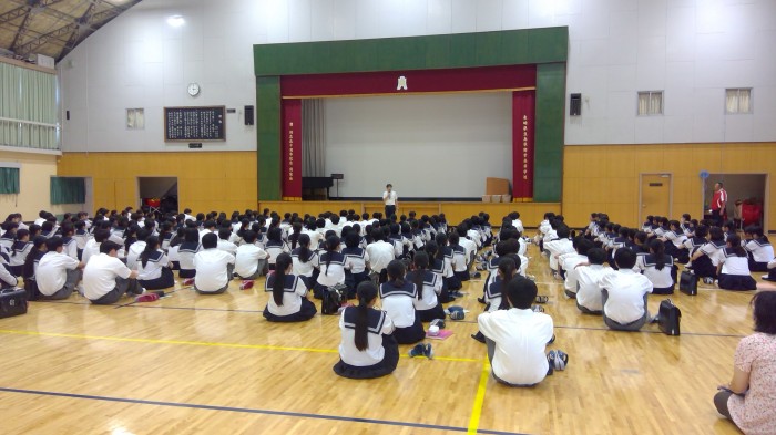 6月10日(火)防災避難訓練を行いました。地震を想定したものです。雨天のため、体育館へ避難しました。
