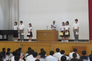 9月1日(月)表彰伝達式、2学期始業式を行いました。