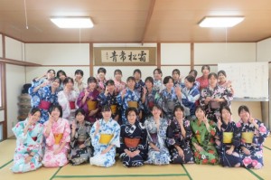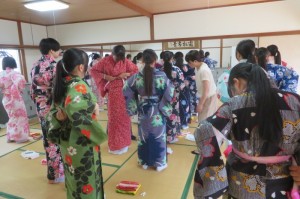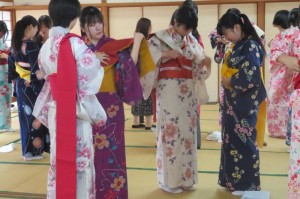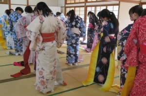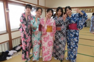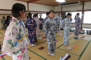エキスパートセミナー「浴衣の着付け」を実施しました。浴衣は自分達で作ったものです。