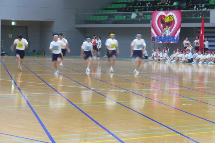 屋内のため天候や熱中症の心配もありません。種目の内容やフロアの使い方など、体育科の先生方の工夫が見られました。