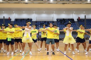 今年度は、総合優勝黄班、競技の部優勝黄班、応援の部赤班、横断幕の部青班となりました。