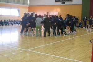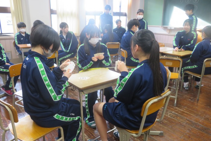 種目はキックベース、ドッチビー、バレー、バドミントン、トランプです。