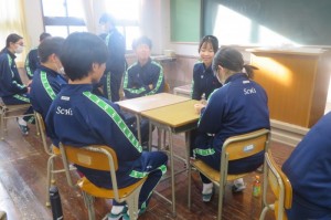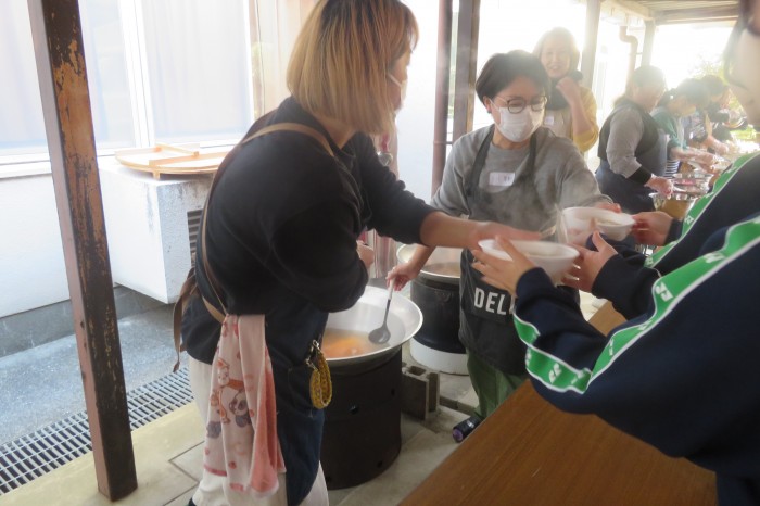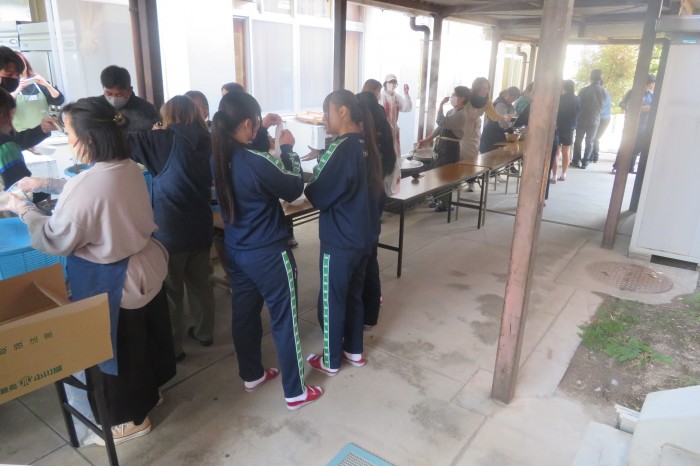 PTAの役員や保護者から炊き出しをしていただいたうどんをいただきました。