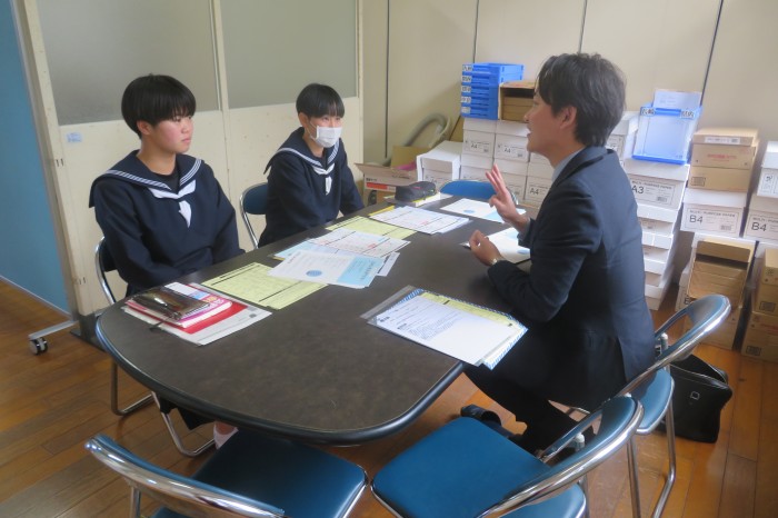 進学希望者は分野別に分かれて各学校から説明を受けました。