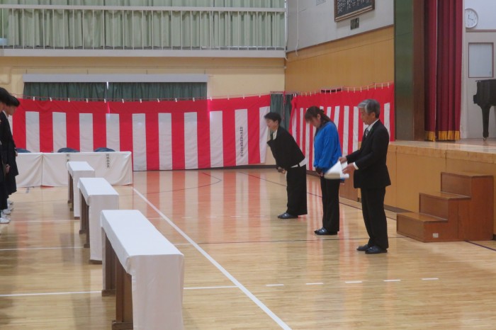 北浦同窓会会長から3年生へお祝いと激励の言葉をいただきました。