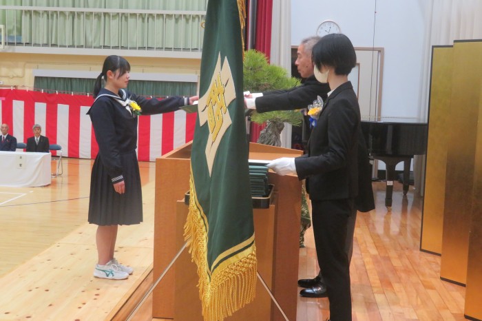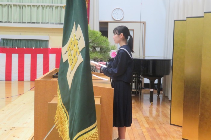 卒業生代表の菊池結菜さんによる答辞では、3年間の思い出とともに、家族や教職員、