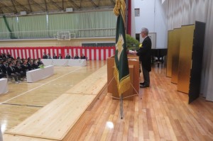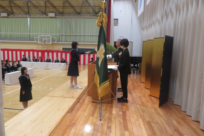 校長式辞では、音楽グループ「ゆず」の「栄光の架橋」の歌詞を紹介しながら、
