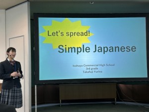 12月21日に行われた第11回活水女子大学 高校生英語プレゼンテーションコンテストにて、本校 国際コミュニケーション科3年生の生徒が第1位に輝きました。総合探究で取り組んだ「やさしい日本語」を広める活動について英語で発表を行いました。