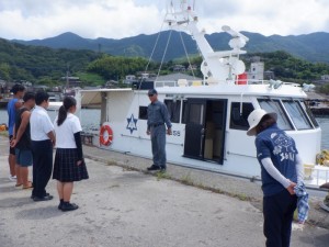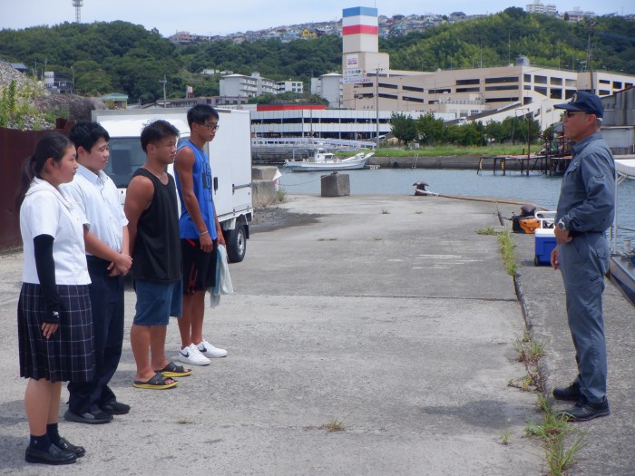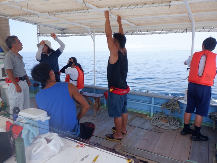 本校の小型実習船「すいらん」で柳埠頭から出港し、高島~三ツ瀬付近の海域で釣りを