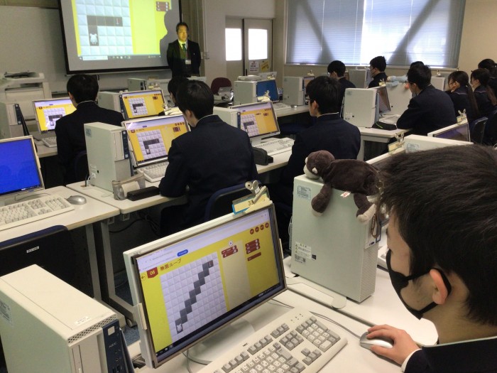 パズル感覚で学んでいきました。受講した生徒からは「プログラムの基礎を学べて良かった。」