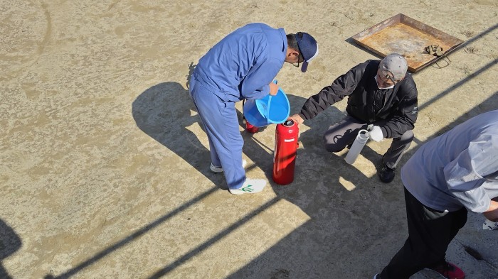 得るために消火講習を行ないました。これまで、海友丸や授業で講習を数時間受けて