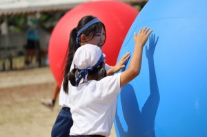 かわいい保育園児によるお遊戯、幼児競争、地域の方々による地区別玉入れ、輪っか回しリレー、そしてみんなで踊る奈留町音頭がありました。